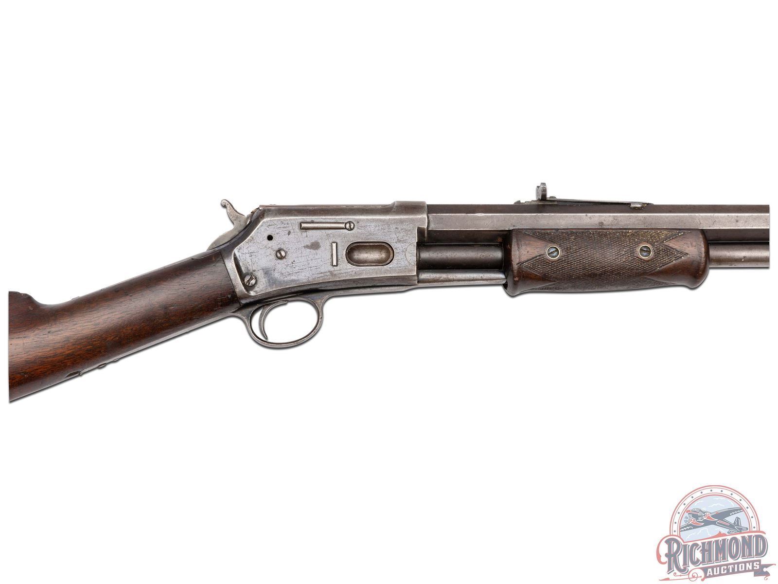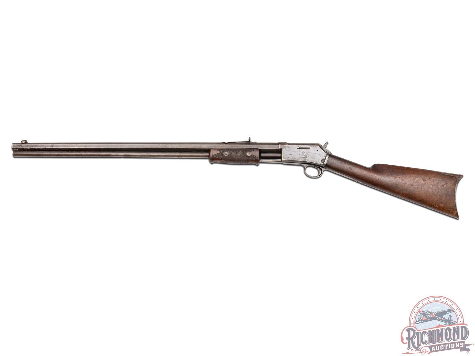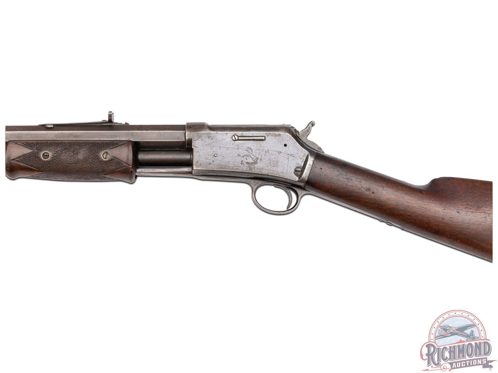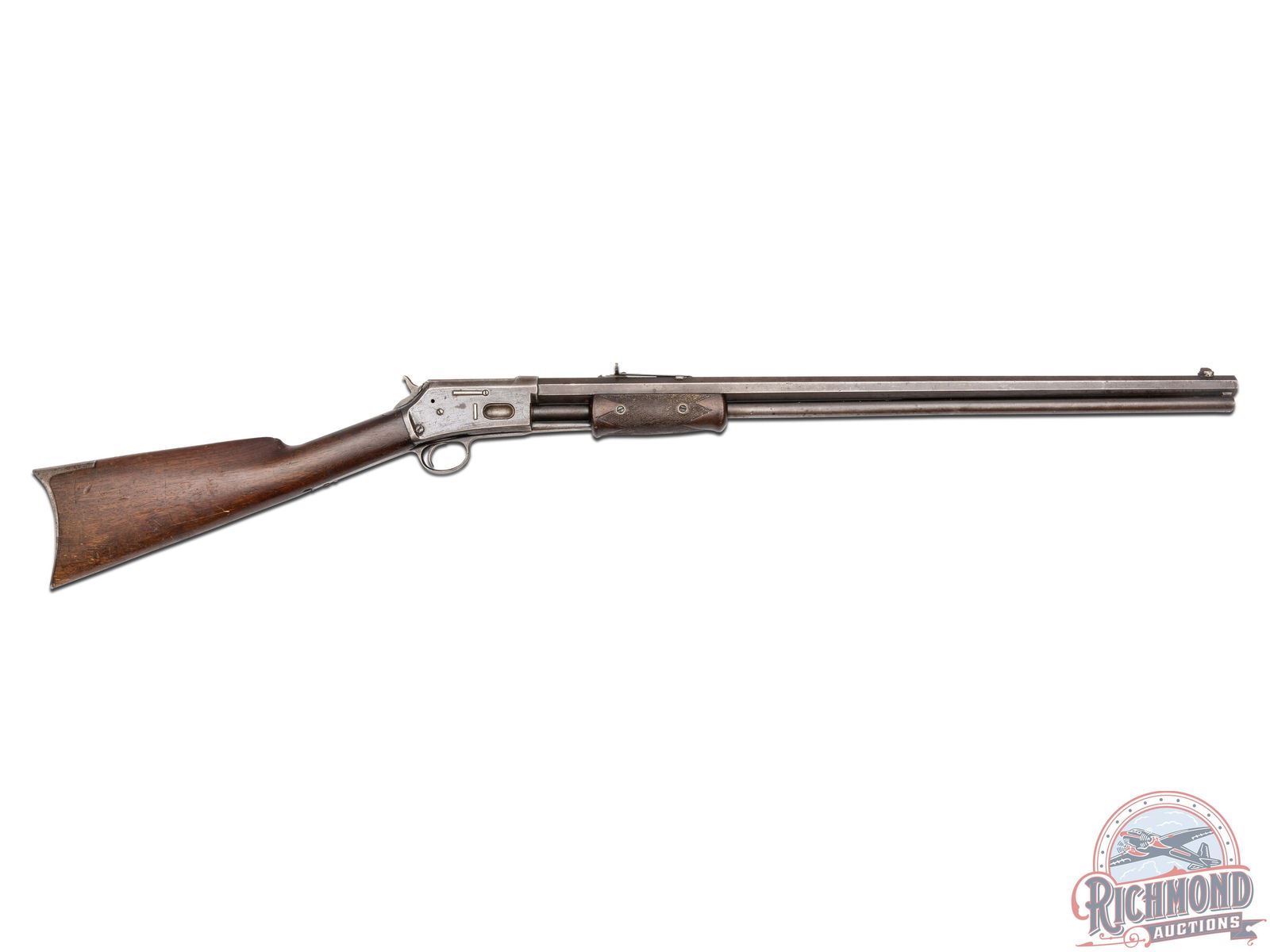 Manufactured in 1891. Features a 26" octagon barrel with period correct rear semi-buckhorn notch sight and blade front. Correct barrel stampings with Colt two-line address and patent dates. Side loading gate with a 15 round full length magazine tube. Blued action with Rampant Colt logo engraved on the left side. Walnut straight grip stock with crescent metal butt plate. Walnut checkered forearm. LOP: 13-1/8". CALIBER: 44-40. S/N: 60619. FFL STATUS: Antique.