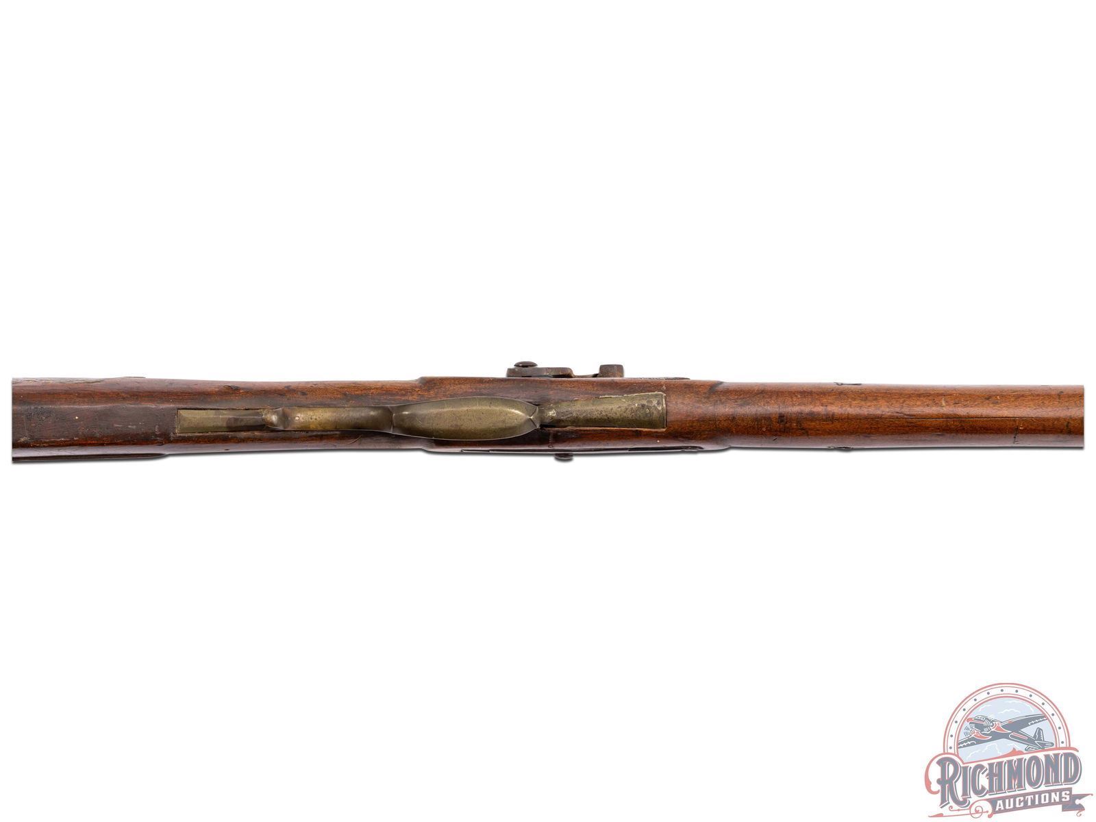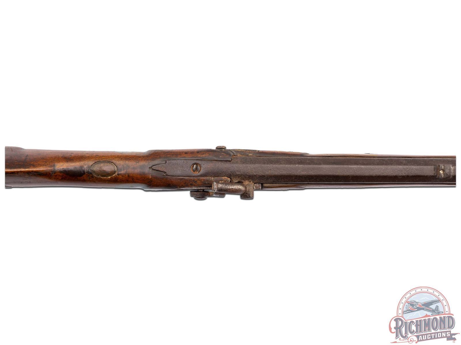Overall fair with lock being a replacement conversion and stock possibly a restock of older Albright parts. Rifle has hard use issues with cracks and dings. Metal is pitted with brass heavily tarnished. Pitted bore with mechanics in need of work.