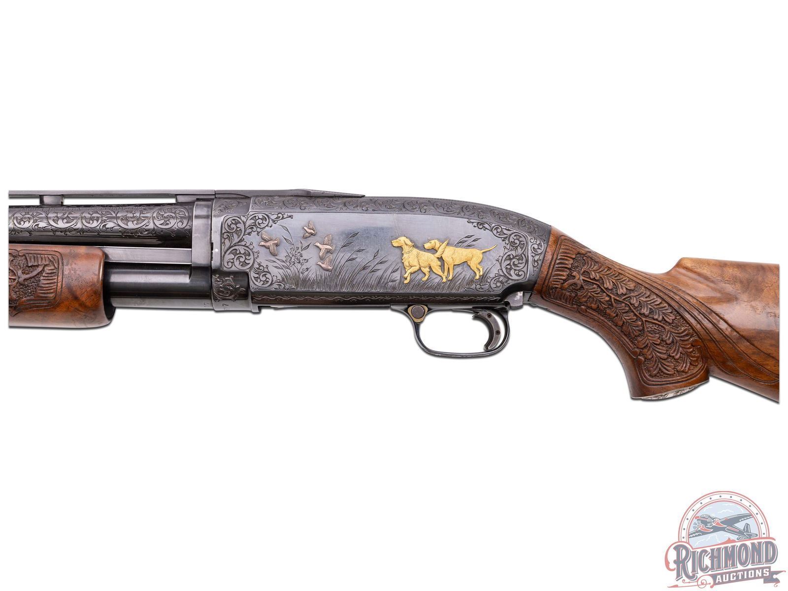 Beautiful 1917 Winchester Model 12 Trap Deluxe 12 GA Shotgun Engraved, Gold & Silver Inlaid