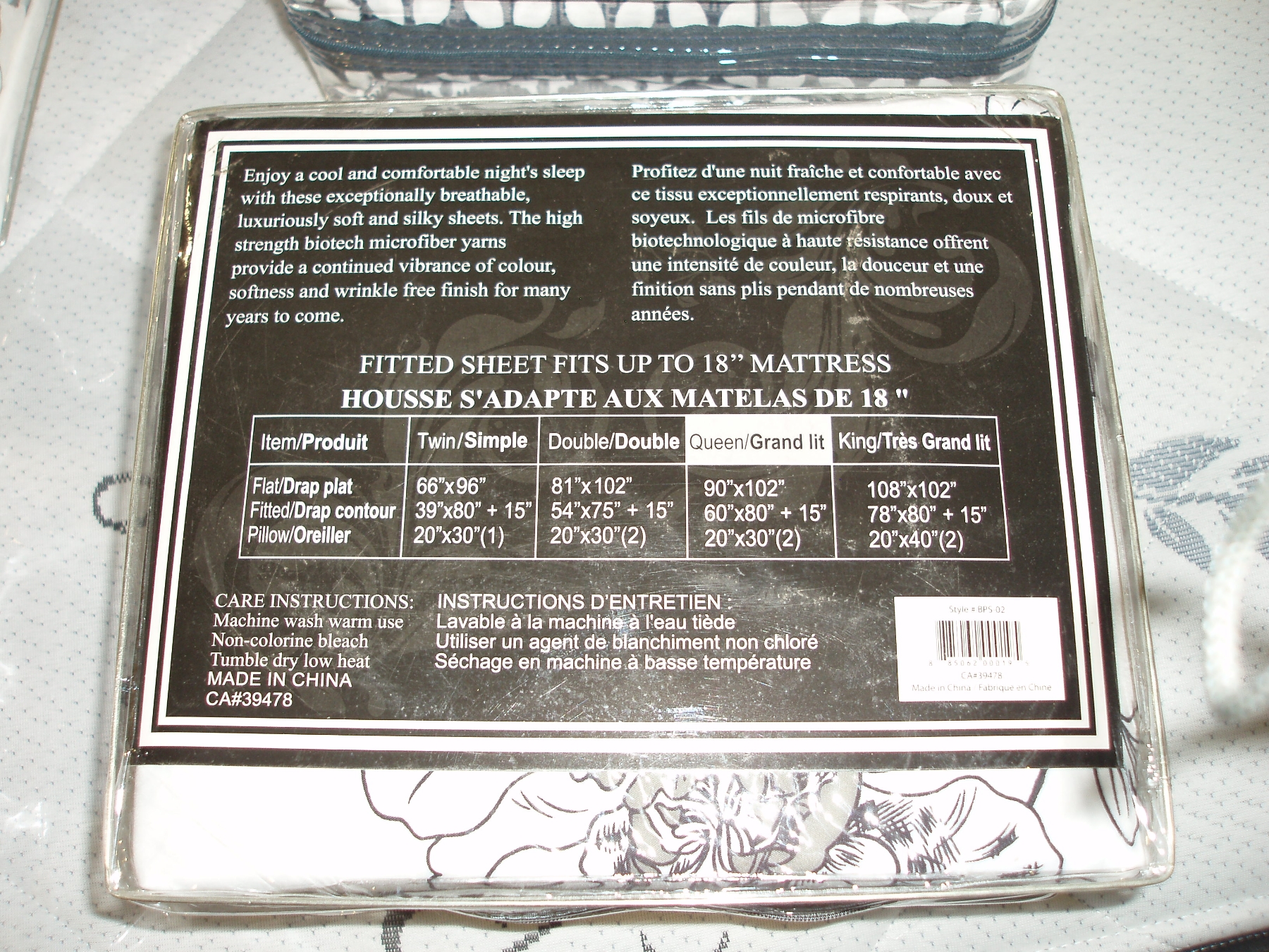 Black/White Flower Patternedl Bamboo Comfort Sheets, Queen