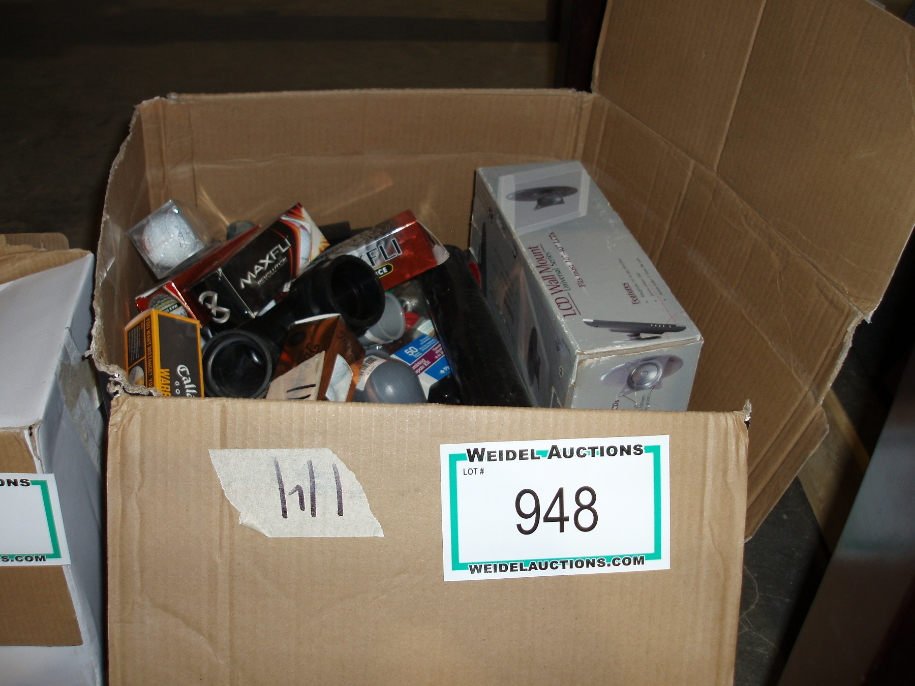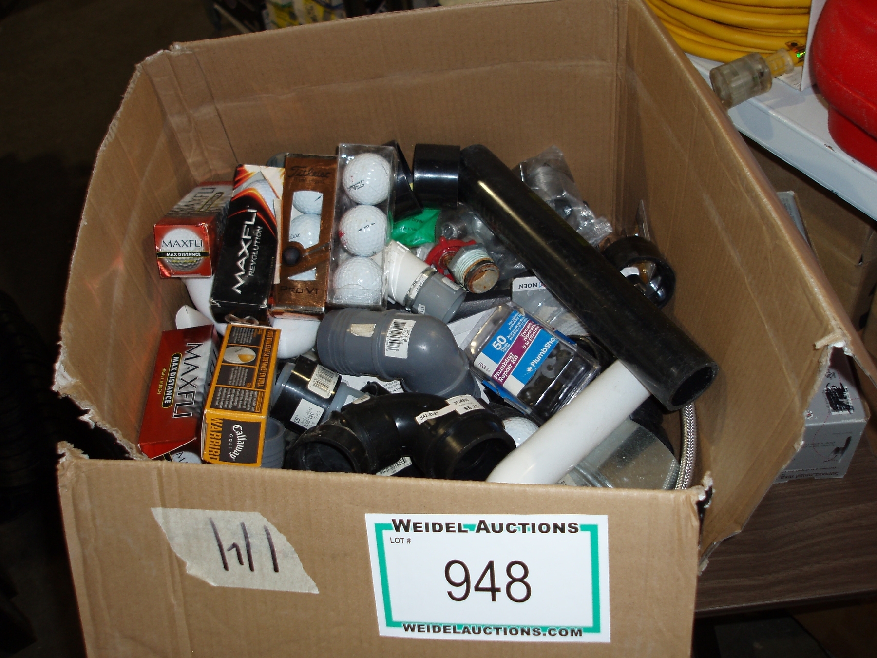 Box of Assort Plumbing Parts, golf balls & LCD Wall Mount for 10 - 40" TV