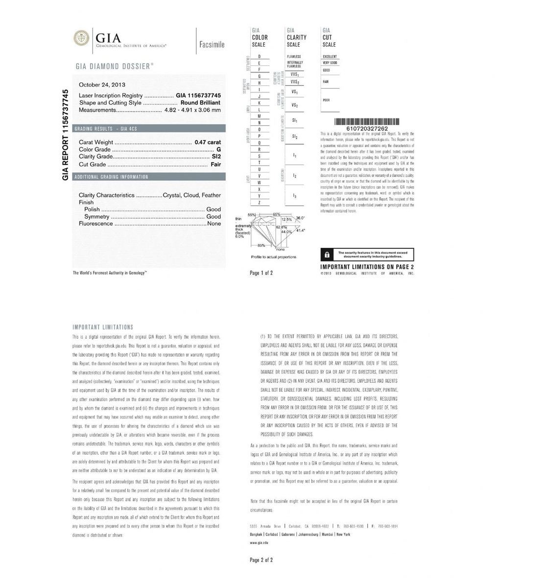 Buy Now - GIA Certified 0.47ct SI-2/G Round Cut Loose Diamond GB4242
