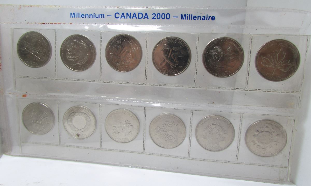 3 Canadian Quarter Collections, In Plastic Sleeves: 1 x Canada 125th Anniversary Quarters (12), 1 x 1999 Canada Millennium Quarters (12), 1 x 2000 Canada Millennium Quarters (12)