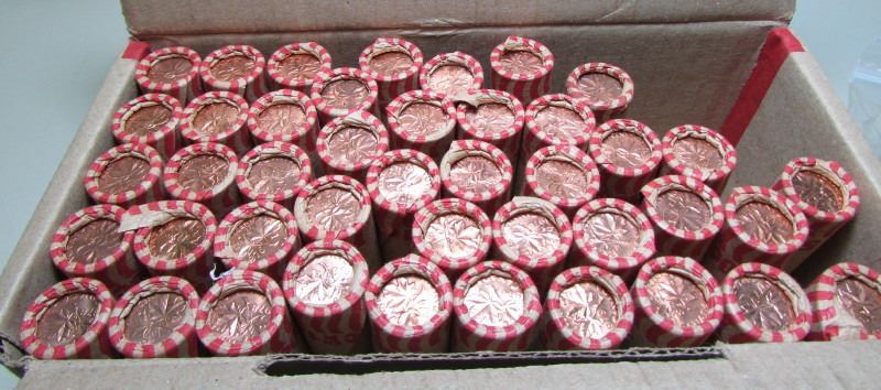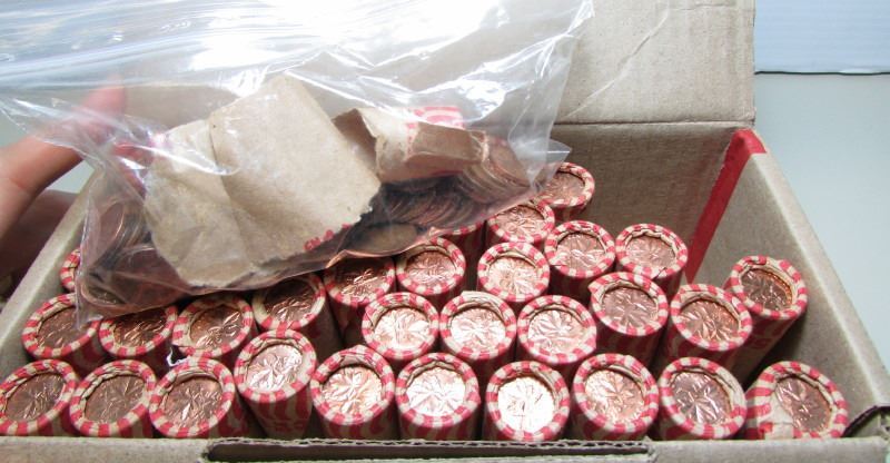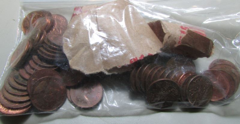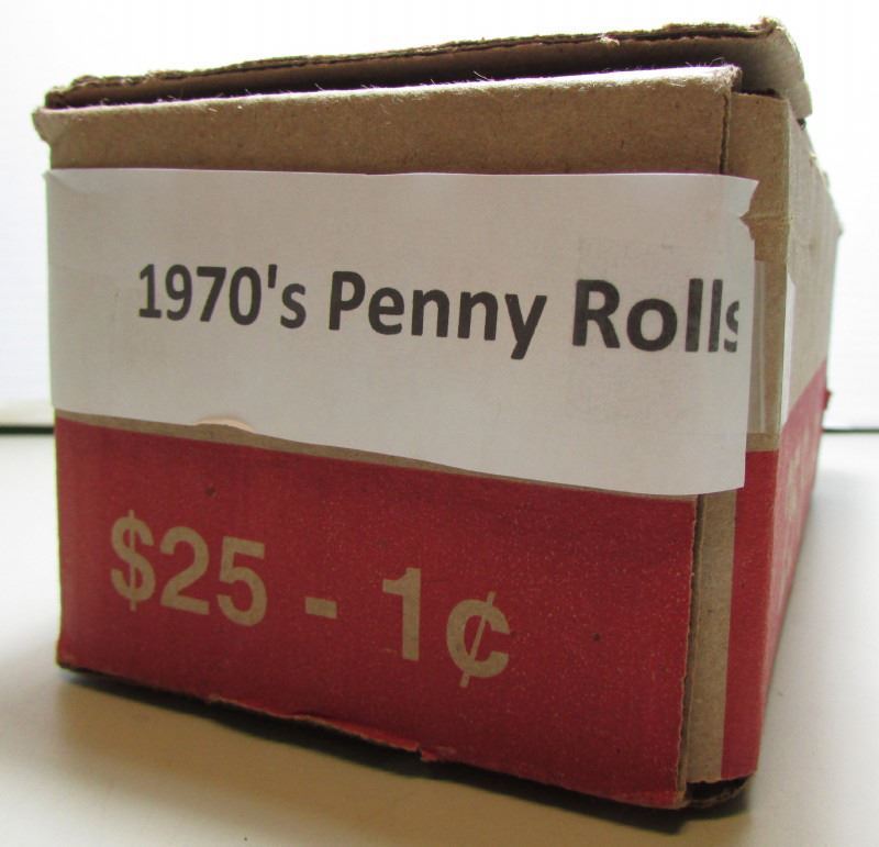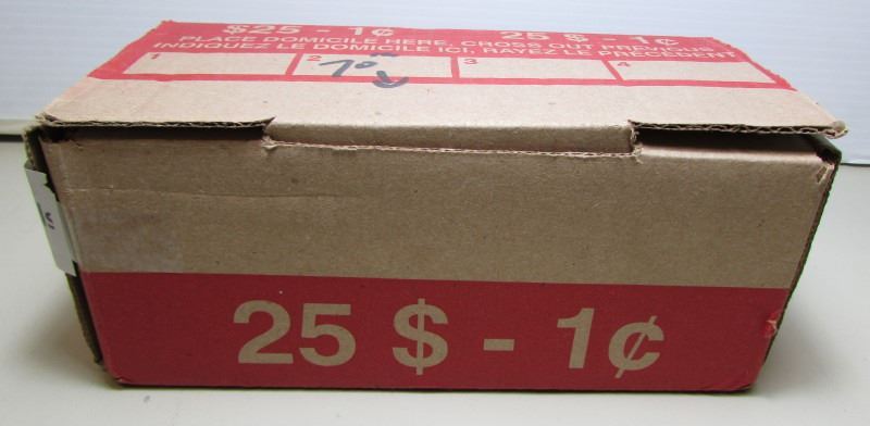 $25 Face Value In Canadian Pennies In Bank Box - 1970's - 1 Roll Opened, Not Searched - Not Red Inside