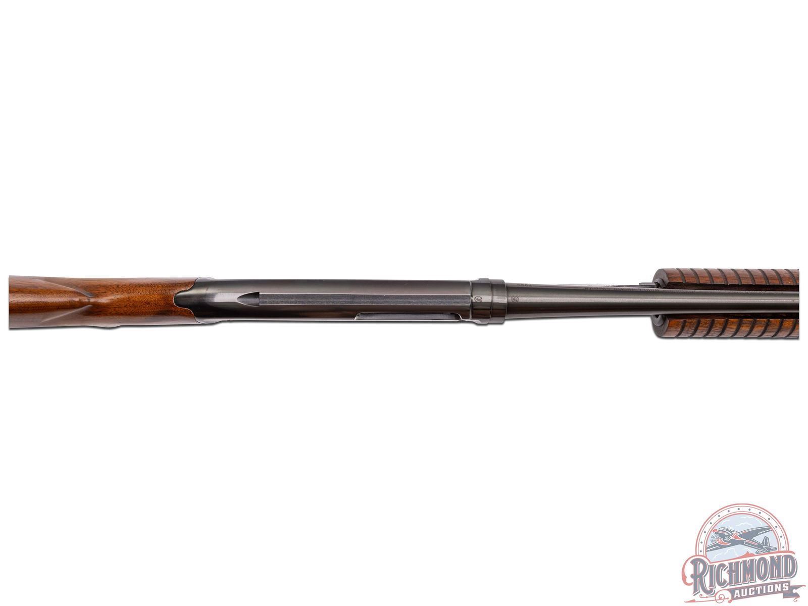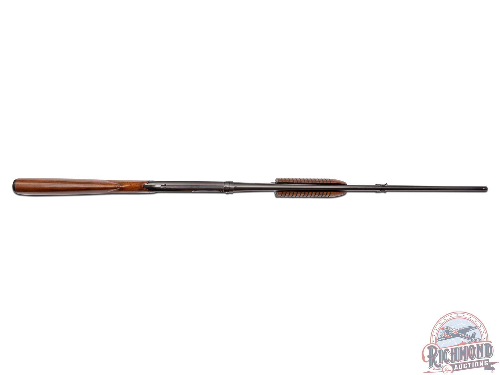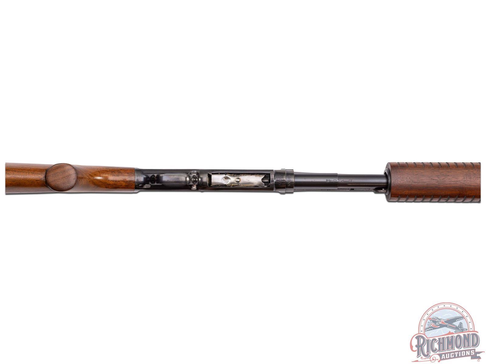 This beautiful "greatest little shotgun" was manufactured in 1948. Features a 28" blued barrel with nickel bead front sight, standard Winchester roll marks and proof marks. Chambered for 3" shells with a Full choke. Blued receiver with matching serial numbers to the barrel and crossbolt safety. Nice walnut stock with pistol grip. Matching forearm slide has 14 line ribs. Fitted with a Winchester factory round logo checkered butt plate. LOP: 13-3/4". DAC: 1-3/8". DAH: 2-1/4". CALIBER: 410. S/N: 73055. FFL STATUS: Curio & Relic.