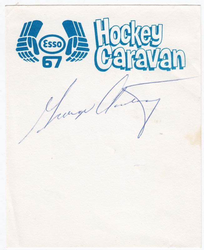 Genuine George Armstrong Autograph - Signed On A 1967 ESSO Hockey Caraval Slip -- Tough Autograph!!