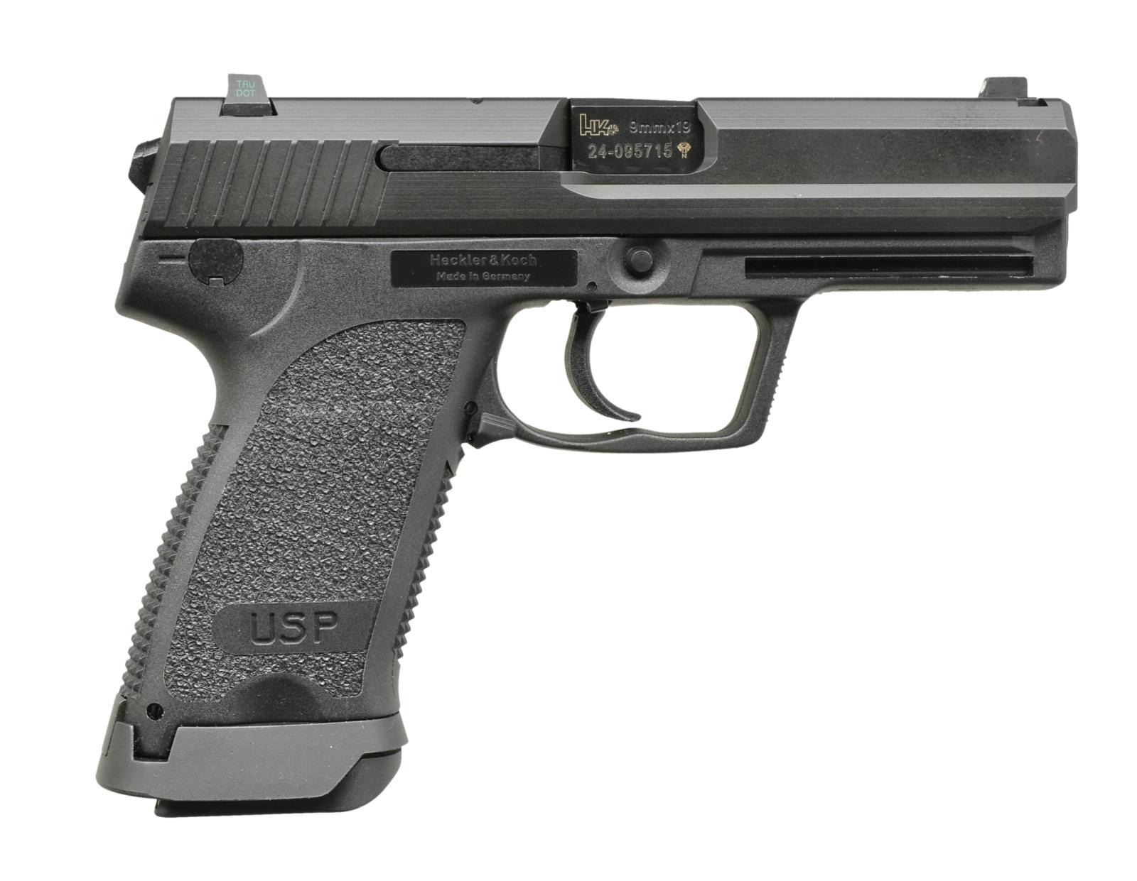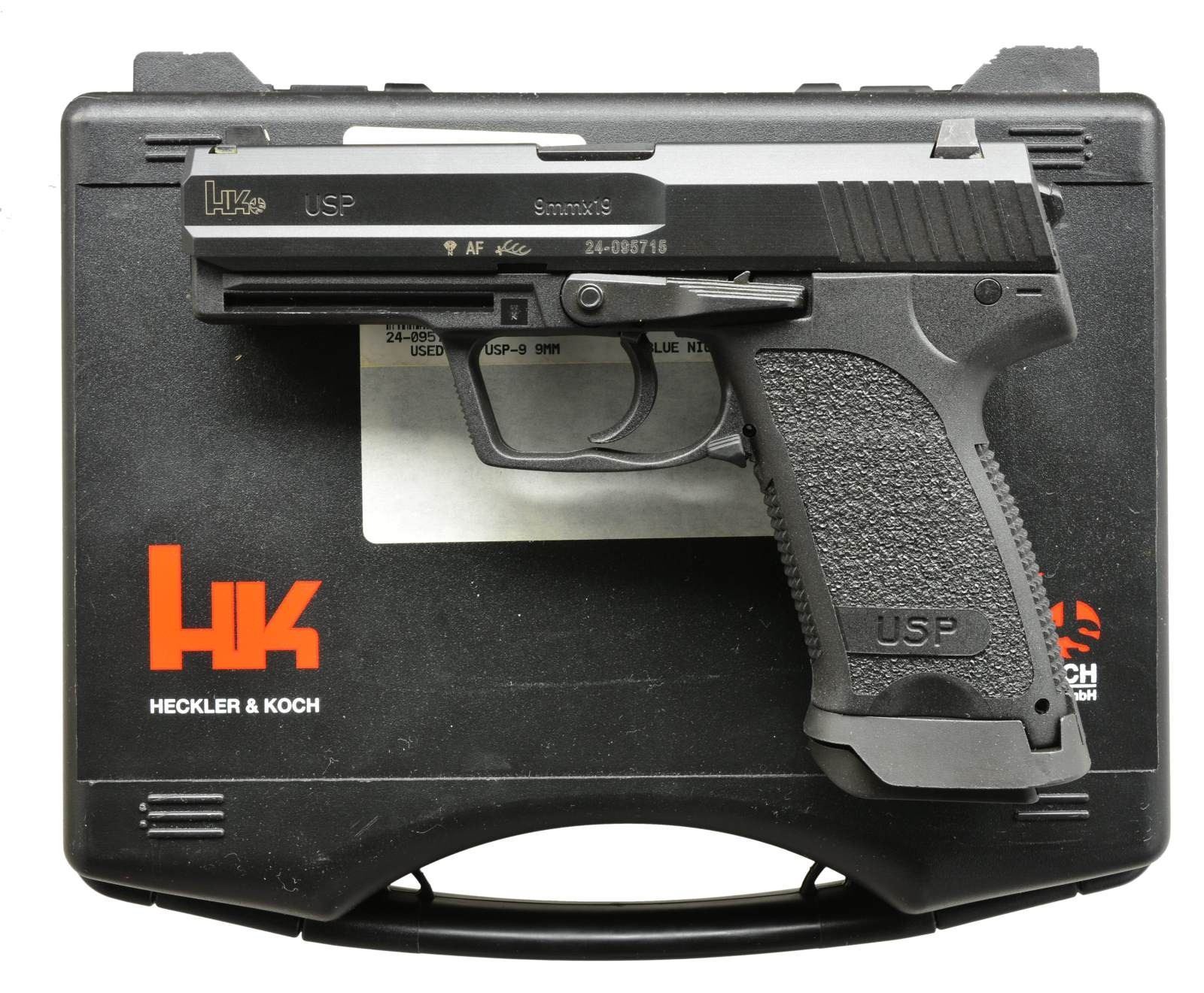 Cal. 9x19. S# 24-095715. Bbl. 4 1/4" w/ polygonal rifling. Matte black steel slide w/ Tru-Dot 3 dot night sights. Polymer frame w/ bottom mounted accessory rail & stippled grip. Bobbed hammer. Box marked "LEM COMPL" indicating the LEM Match trigger system. MAGS: 2 Restricted Law Enforcement 18 rd. UNATTACHED ACCESSORIES: molded box w/ matching labels containing owner's manual, fired casing & trigger lock. CONDITION: over 99% blue. Near excellent bore. (21-852/DS). MODERN. $700-1,000.