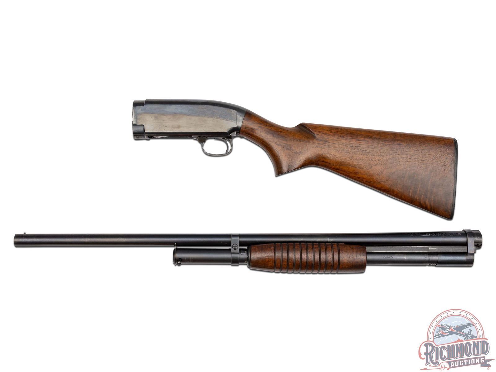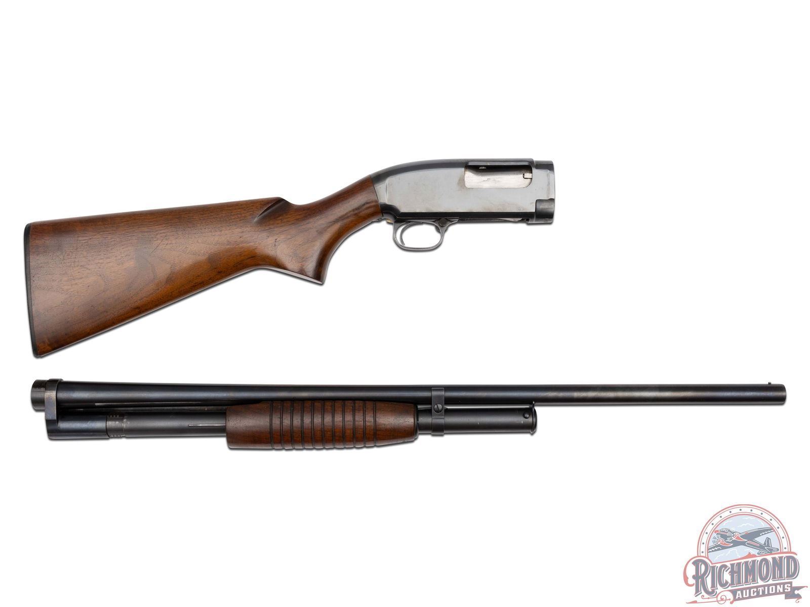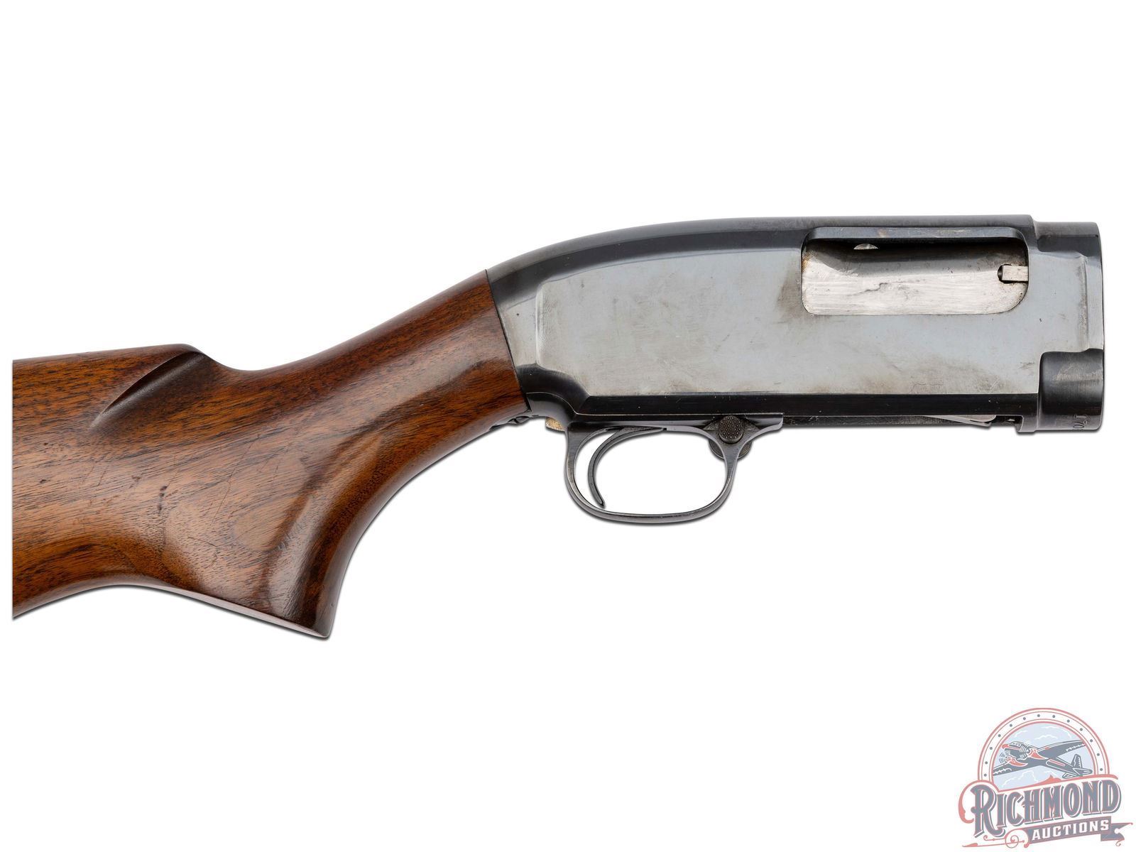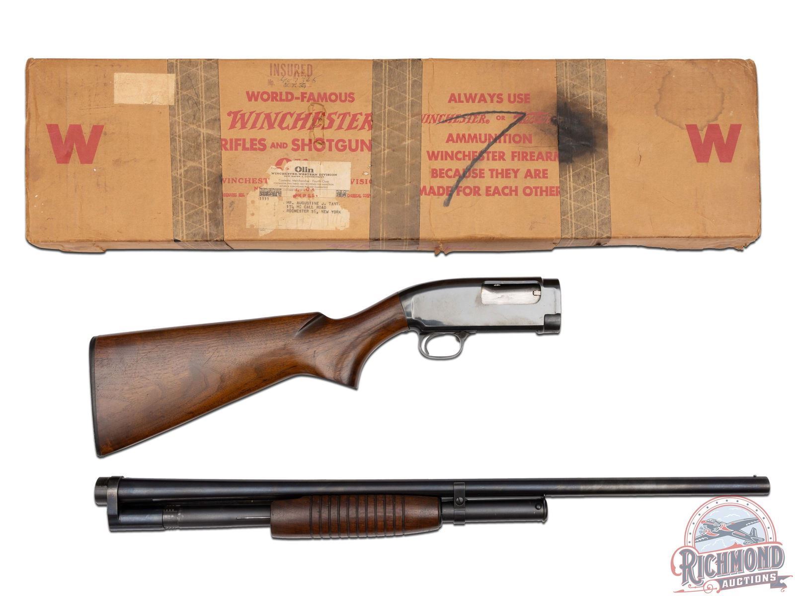 Manufactured in 1959 by Winchester Arms Co. Features a 28" round blued barrel chambered for 2-3/4" shells with modified choke and nickel bead front sight. Blued receiver with crossbolt safety. Walnut wood stock with pistol grip and 11-line ribbed forearm. Fitted with a Winchester factory synthetic butt plate. Comes in a factory period correct box with Winchester paper. LOP: 14". DAC: 1-1/4". DAH: 2". CALIBER: 16 GA. S/N: 1706615. FFL STATUS: Curio & Relic.