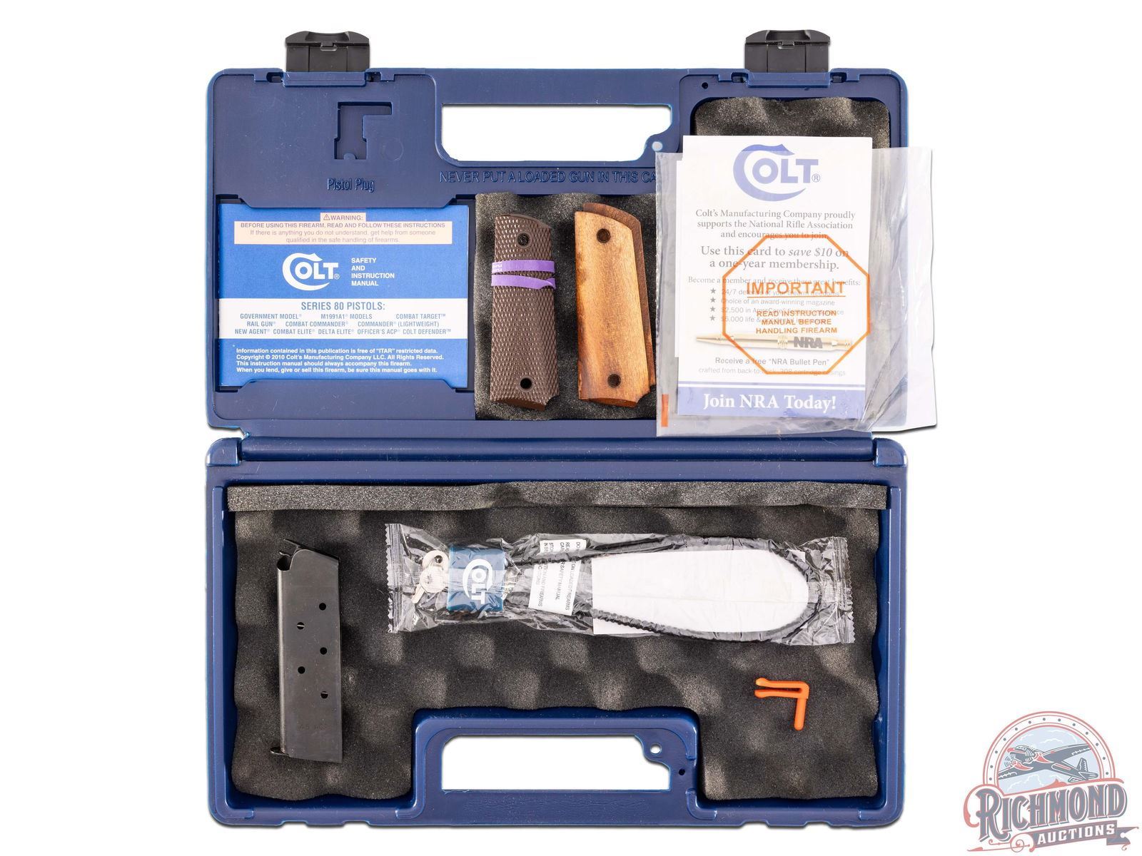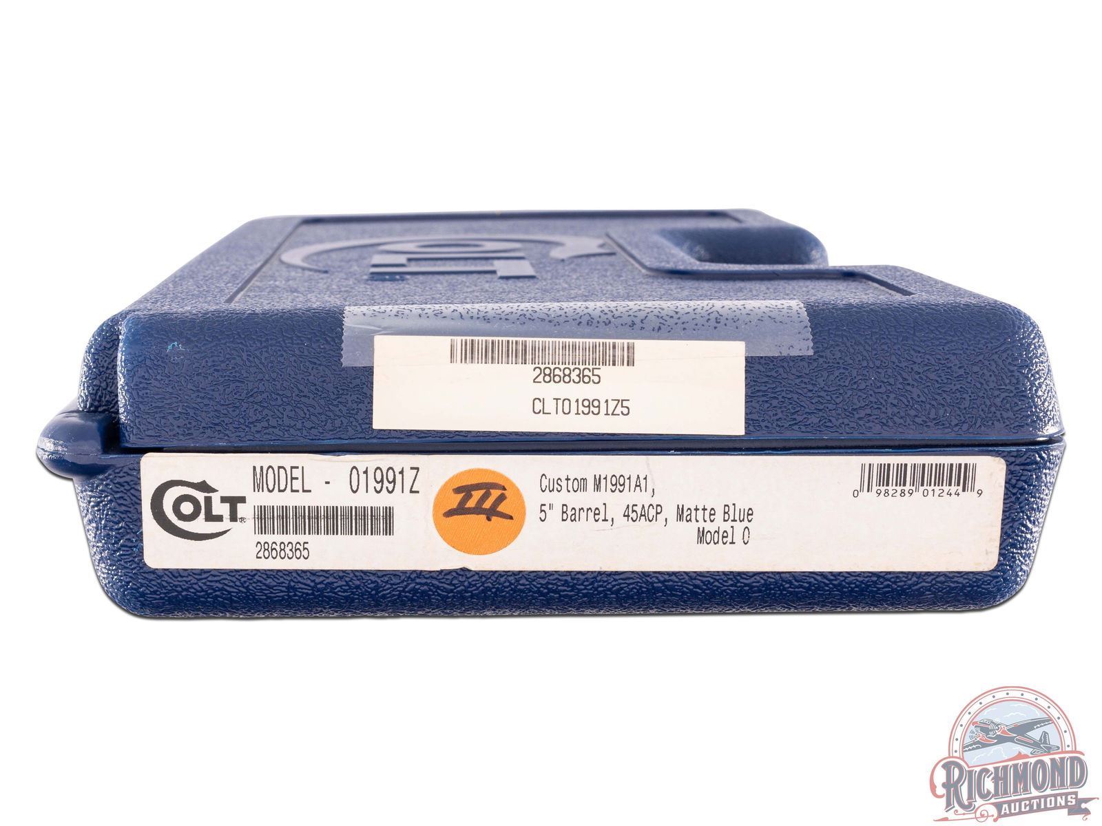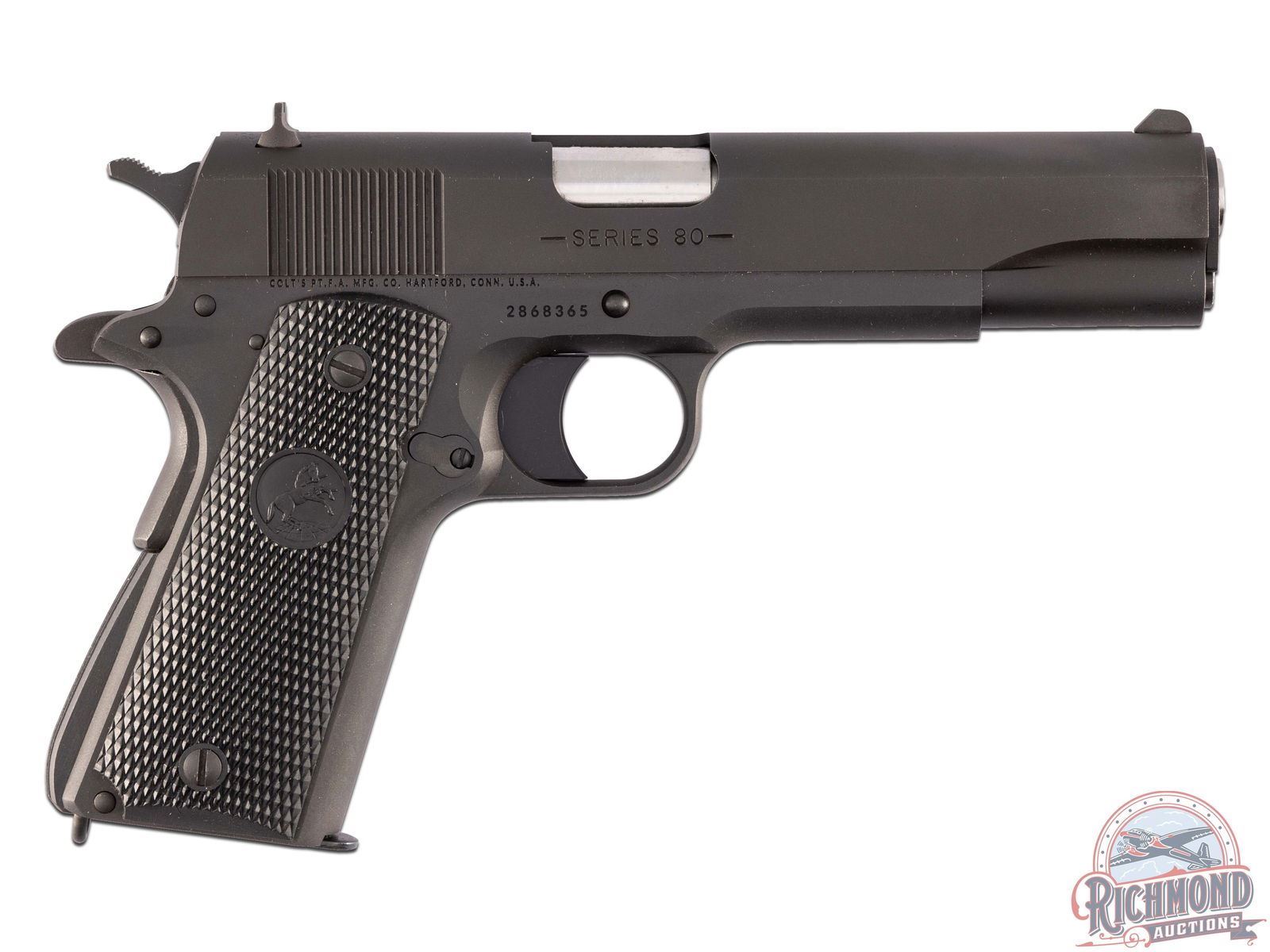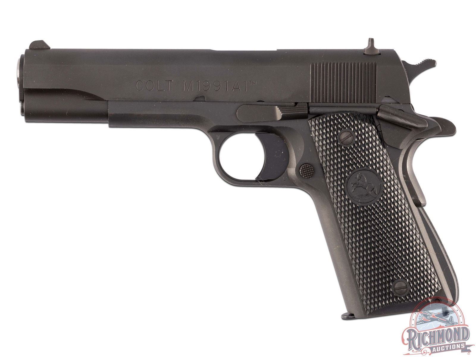 Manufactured in 2014. This fine M1991A1 Series 80 pistol features a 5" barrel with original style iron sights. All 1911 controls with grip safety. Matte blued finish with lanyard loop on base of the grip. Fitted with factory black checkered synthetic grip panels and includes a brown checkered synthetic pair and smooth walnut pair. Comes in the original factory case with two 8-round factory magazines, cable lock, and factory paperwork. CALIBER: 45 ACP. S/N: 2868365. FFL STATUS: Modern.