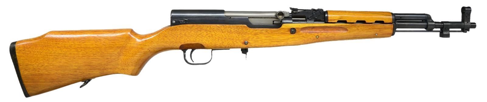 MAGAZINES. Cal. 7.62x39. S# 9302483. Bbl. 16 5/8". Numbers match on receiver & bolt. Import marked on left side of receiver. Tangent rear sight graduated to 1000m. Post front sight w/ protective hood. Cleaning rod is present. No provision for bayonet. Rifle manufactured to use detachable AK-type mags. & has sporting type hardwood stock w/ Monte Carlo comb. Black sporting buttplate. MAGS: none. CONDITION: stock & metal have attractive finish w/ very light high point wear. Near excellent bore. (21-753/RW). MODERN. $400-600.