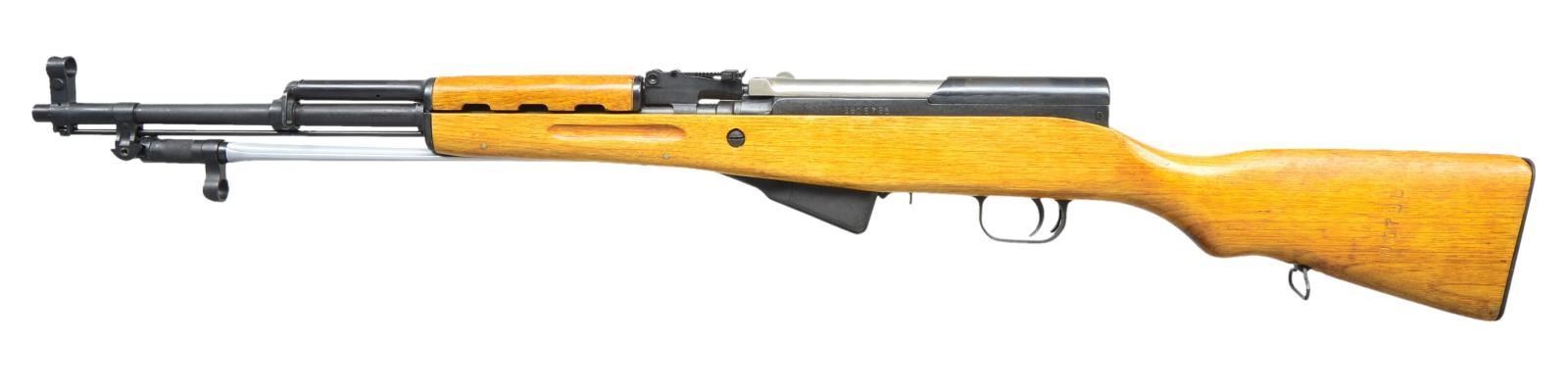 STOCK & 30 RD. MAGAZINE CONVERSION KIT. Cal. 7.62 x 39. S# 8805785. Bbl. 20 1/2". All visible numbers match. Receiver marked only w/ S#. Import marked on right side of bbl. Tangent rear sight graduated to 1000m. Post front sight w/ protective hood. Cleaning rod is present. 12" Folding spike bayonet. Hardwood stock set cleaning kit in butt. UNATTACHED ACCESSORIES: black, synthetic folding stock w/ pistol grip & synthetic handguard. Magazine conversion kit included for detachable 30 rd. mags. MAGS: 2-30 rd. synthetic. CONDITION: rifle has attractive appearance w/ very light overall wear & scattered handling marks. Very good, shiny bore. Conversion stock & handguard in very good condition. Conversion magazines appear to be in serviceable condition. (21-1641/RW). MODERN. $350-500.