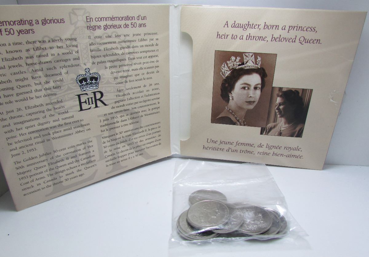 Commemorating 50 Years Of Reign - 10 Canadian 50-Cent Coins In Original Packaging From Royal Canadian Mint