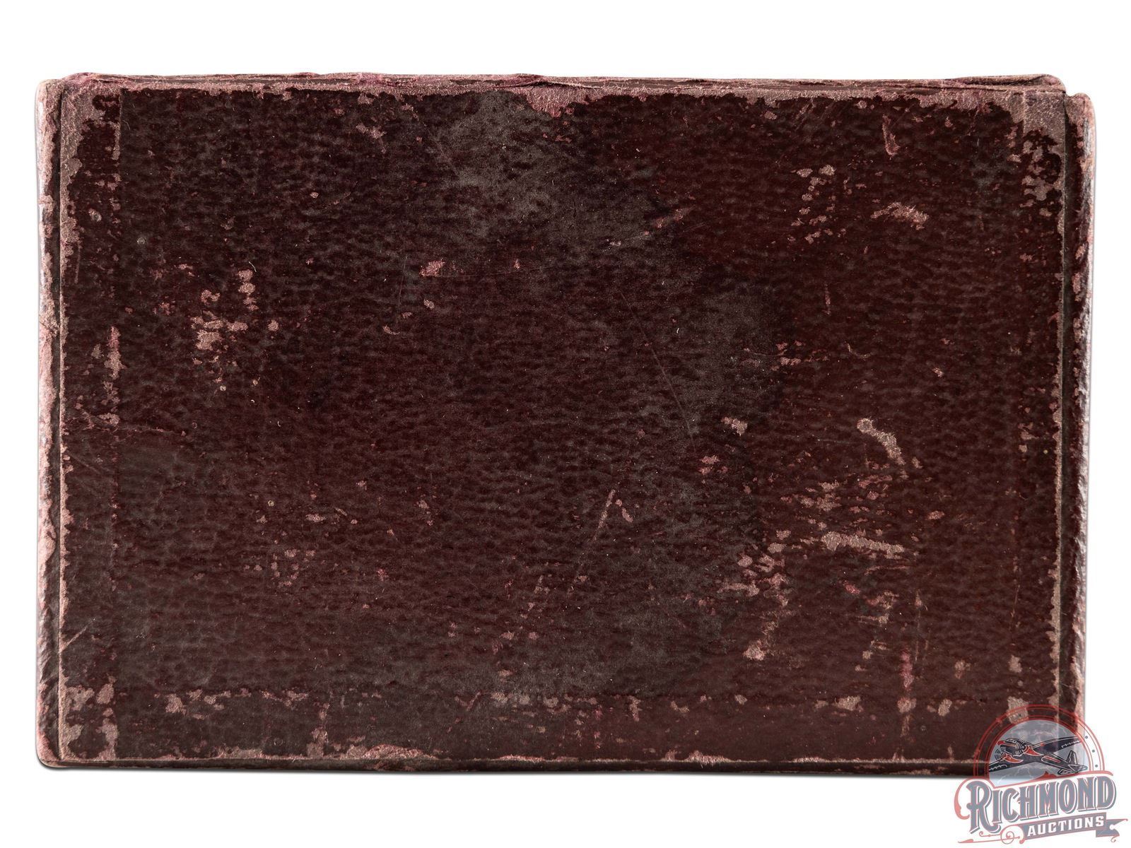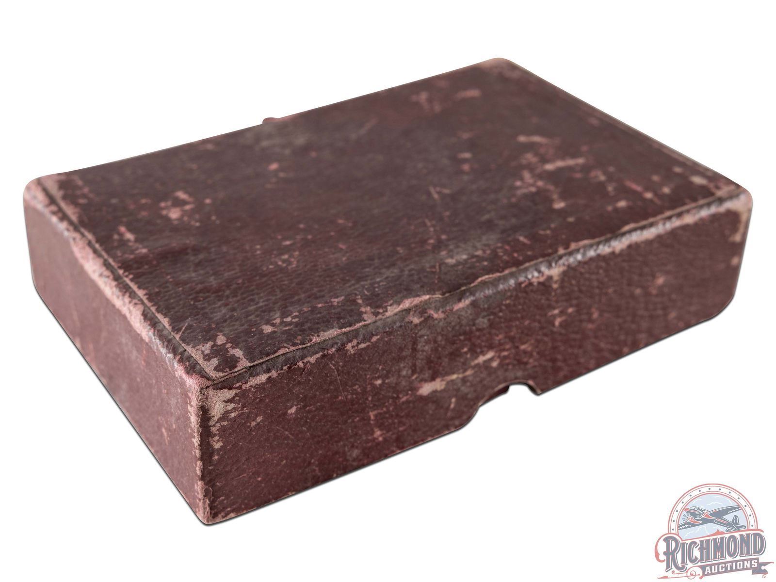 Peters Cartridge Company of Cincinnati, Ohio shotgun shell dummy kit with label listing "League, Referee, New Victor and Ideal with kit having 5 "Ideal" window shells loaded with various smokeless powders. Possibly original and is specific to this headstamp. Kit is housed in purple simulated leather cardboard hinged case.