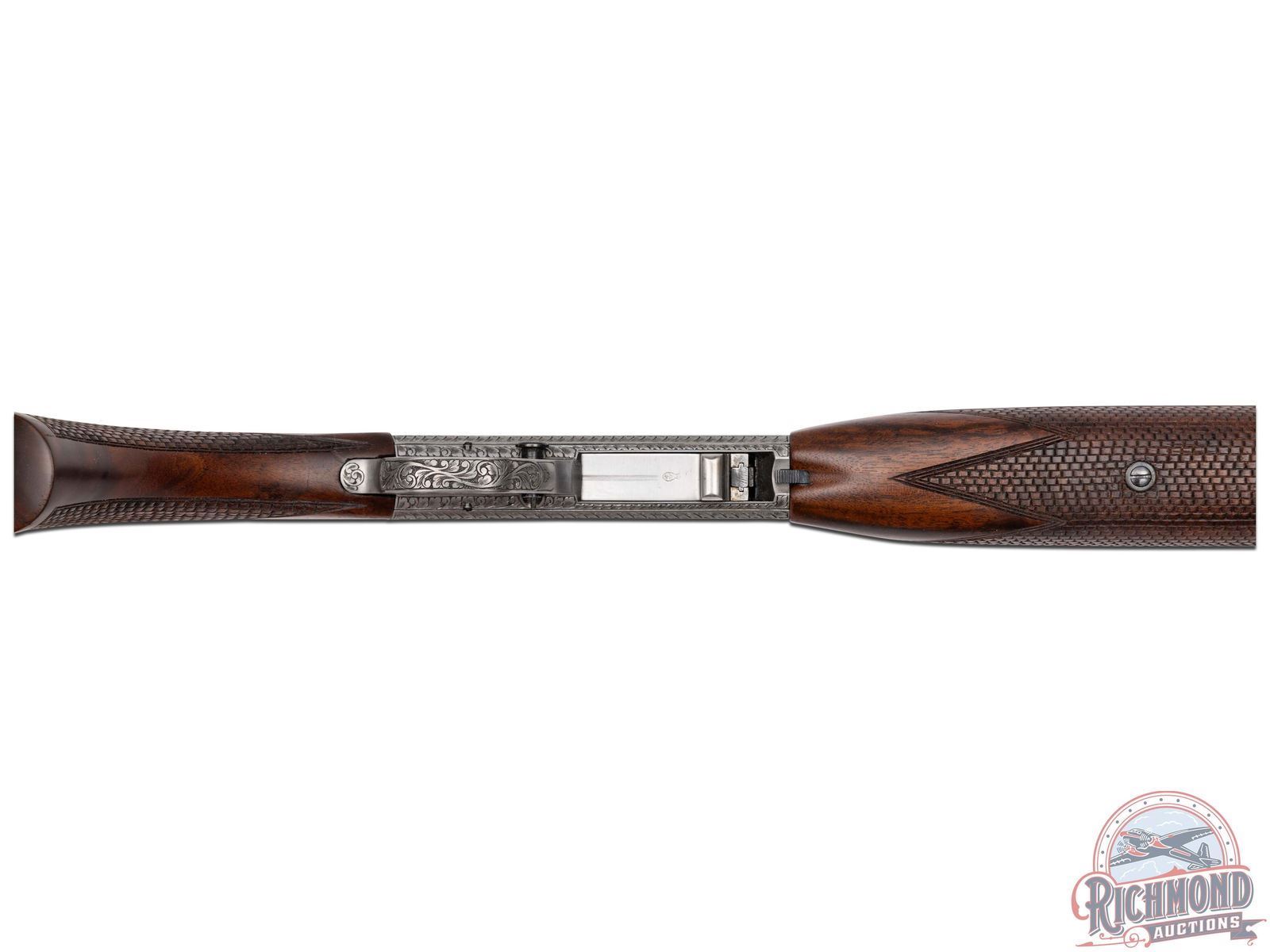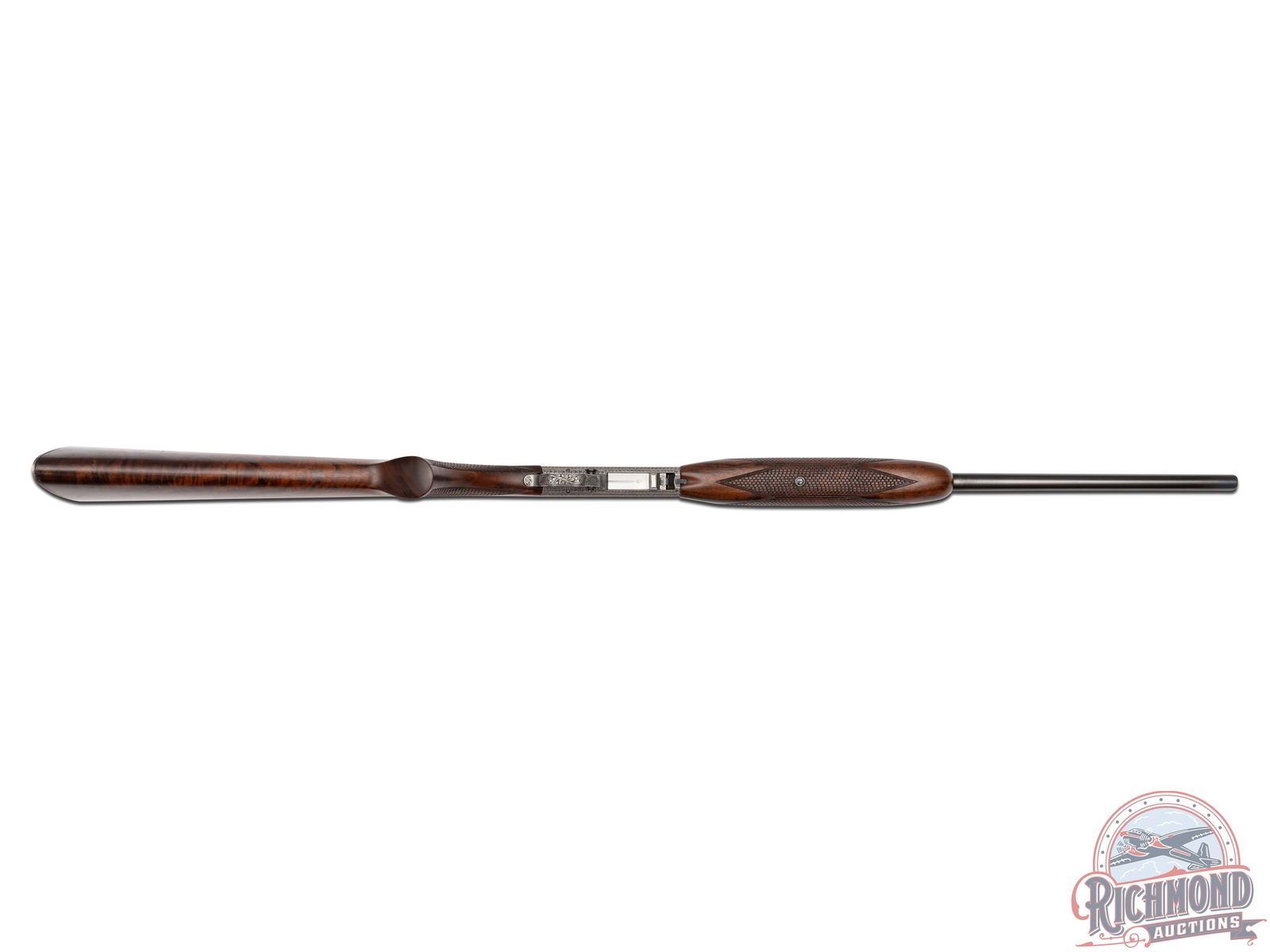 Retains 97%+ finish showing only a small spot on the left side of the barrel below the rear sight. Stock shows very faint handling marks and a few tiny dings in the checkering. Small blemish on the heel of the butt plate. Excellent bore, likely unfired therefore has not been assembled. Case is in great condition.