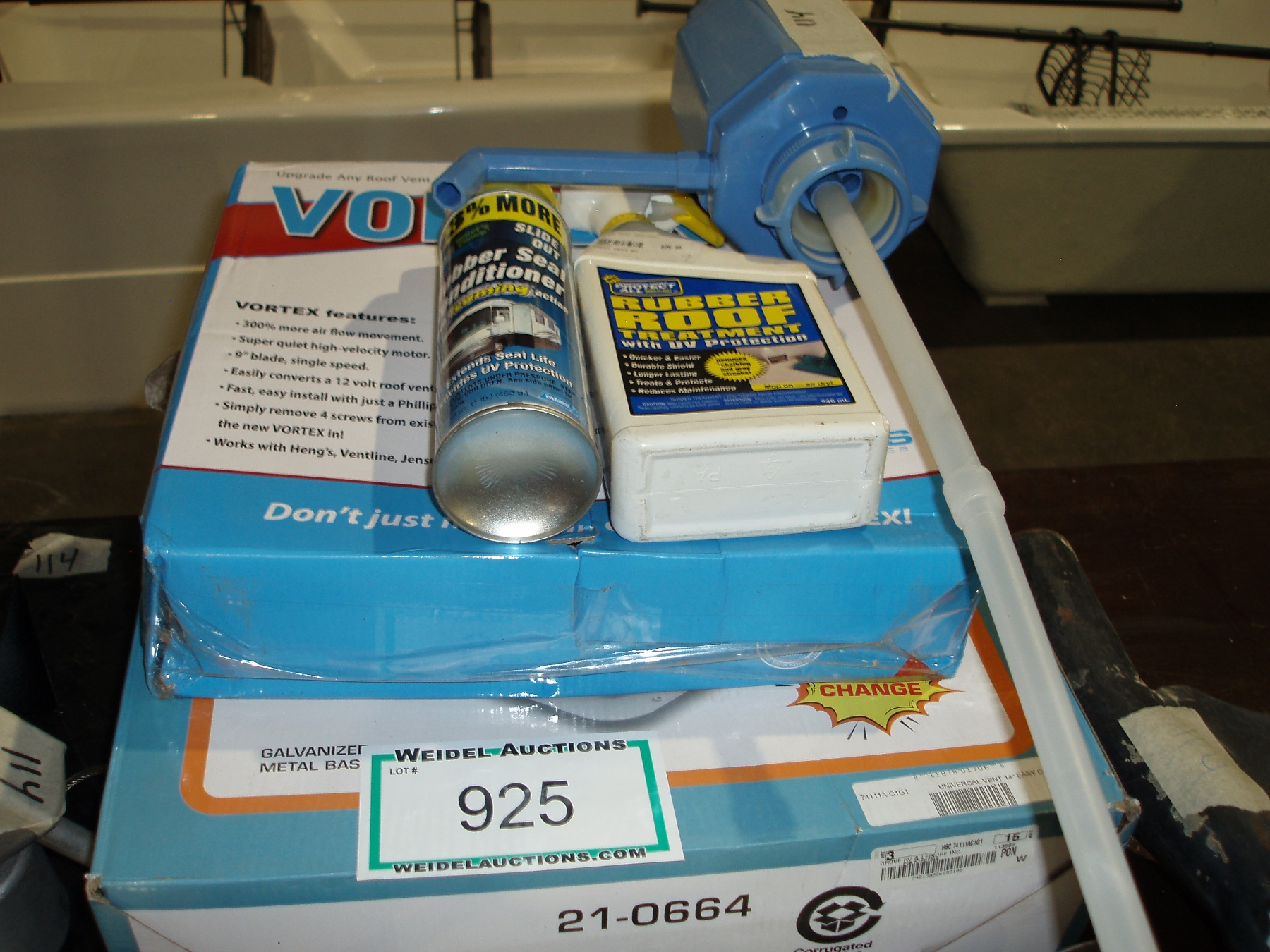 RV Parts, cooling fan, universal roof vent, rubber seal conditioner and water jug pump
