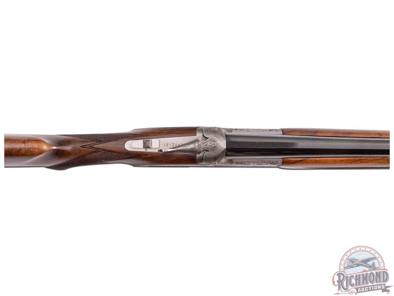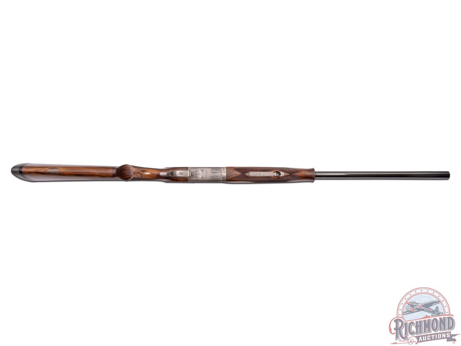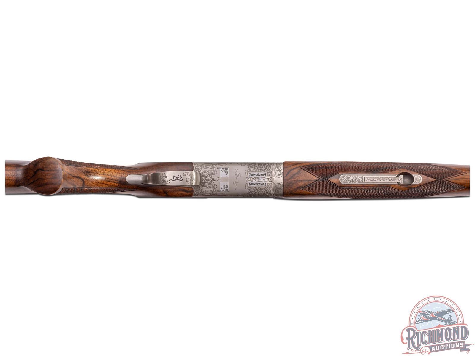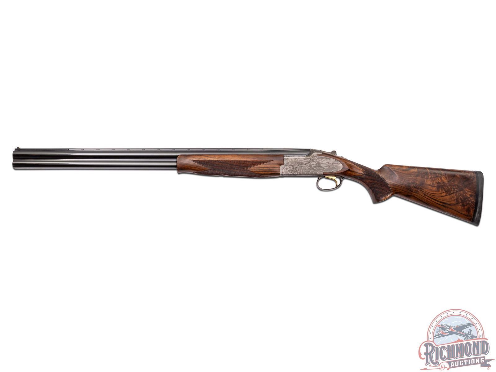 Made in Japan by Browning in 2000. This model was only made between 2000-2003. 28" blued fluid steel barrels in 12 gauge with Invector chokes, ejectors, and 3" chambers with Browning Utah and Montreal Addresses. Satin finished floral engraved action with side plates featuring woodcock scene on right and pheasant on left and floral scene with "Privilege" on bottom. Action has gold washed single selective trigger, top tang safety selector, and satin finished Browning Deerhead Logo trigger guard. Fine Circassian walnut checkered pistol grip stock with German silver oval vanity plate, and Browning hard rubber recoil pad. Matching walnut checkered Schnabel forearm with latch release. LOP: 14-1/4". DAC: 1-1/2". DAH: 2". CALIBER: 12 GA. S/N: 08334MZ131. FFL STATUS: Modern.