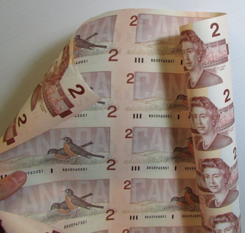 Uncut Sheet Of 1986 Canada $2 Two Dollar Bank Notes