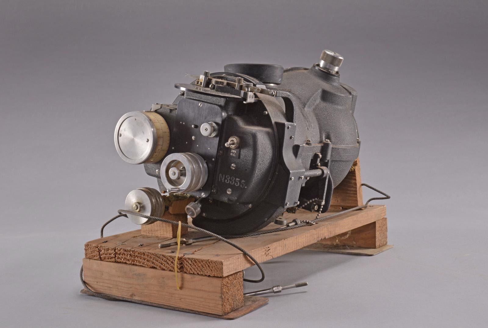 A rare & seldom offered example of a WWII American Norden bomb sight. The bomb sight was America’s top secret weapon in the bombing campaign against Japan & Germany. It was so important to the war effort that men who utilized the bomb sight had to take an oath of secrecy never to talk about it. The Norden bomb sight was a legend in WWII. It allowed planes to bomb more safely at higher altitudes & was so accurate, pilots joked that they could drop bombs in a pickle barrel. This sight is black & appears to have all its knobs & calibrators intact. The optics appear functional though obviously they have not been tested. What a great centerpiece for the WWII aviation collection! CONDITION: there are a few scattered scuffs & scrapes & ample dust but the bomb sight remains as issued. (02-14279/BF). $1,500-2,500.