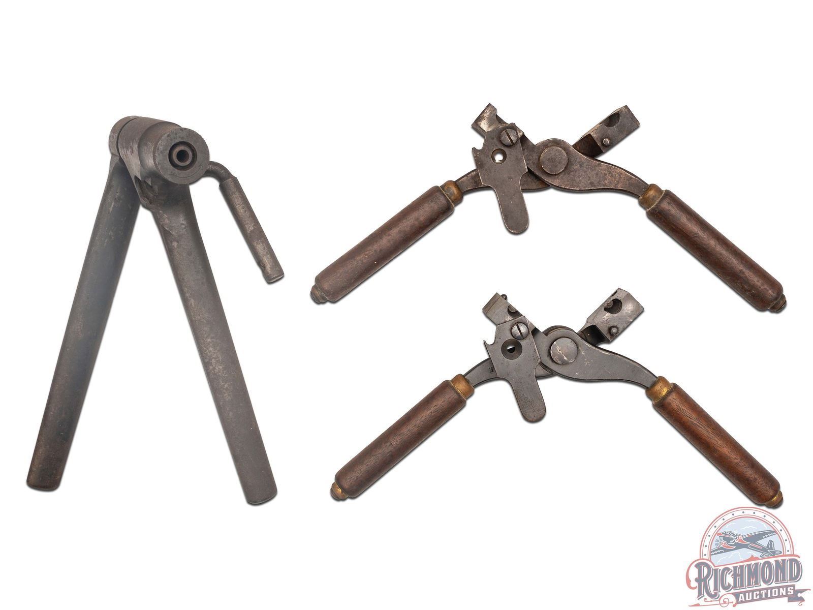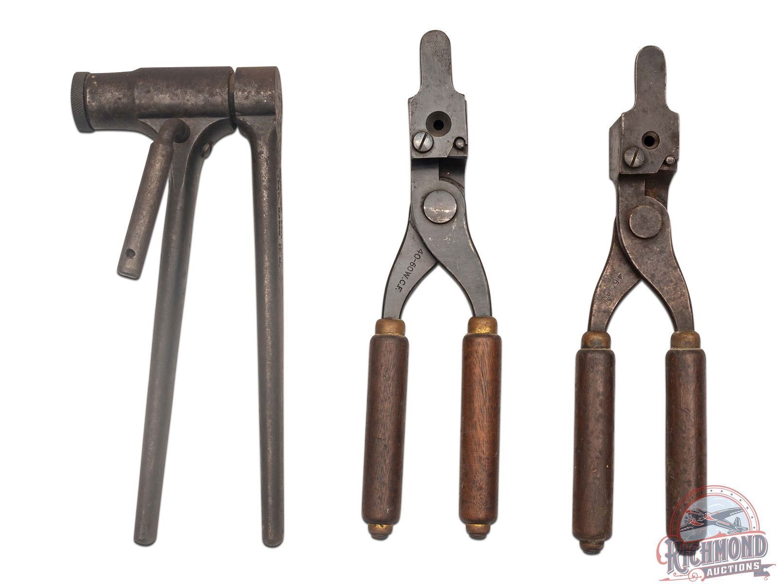 Lot consists of Winchester Model 1891 loading tool in 45-90 W.C.F. and two wooden handled Winchester molds in 40-60 W.C.F. and 45-90 W.C.F.